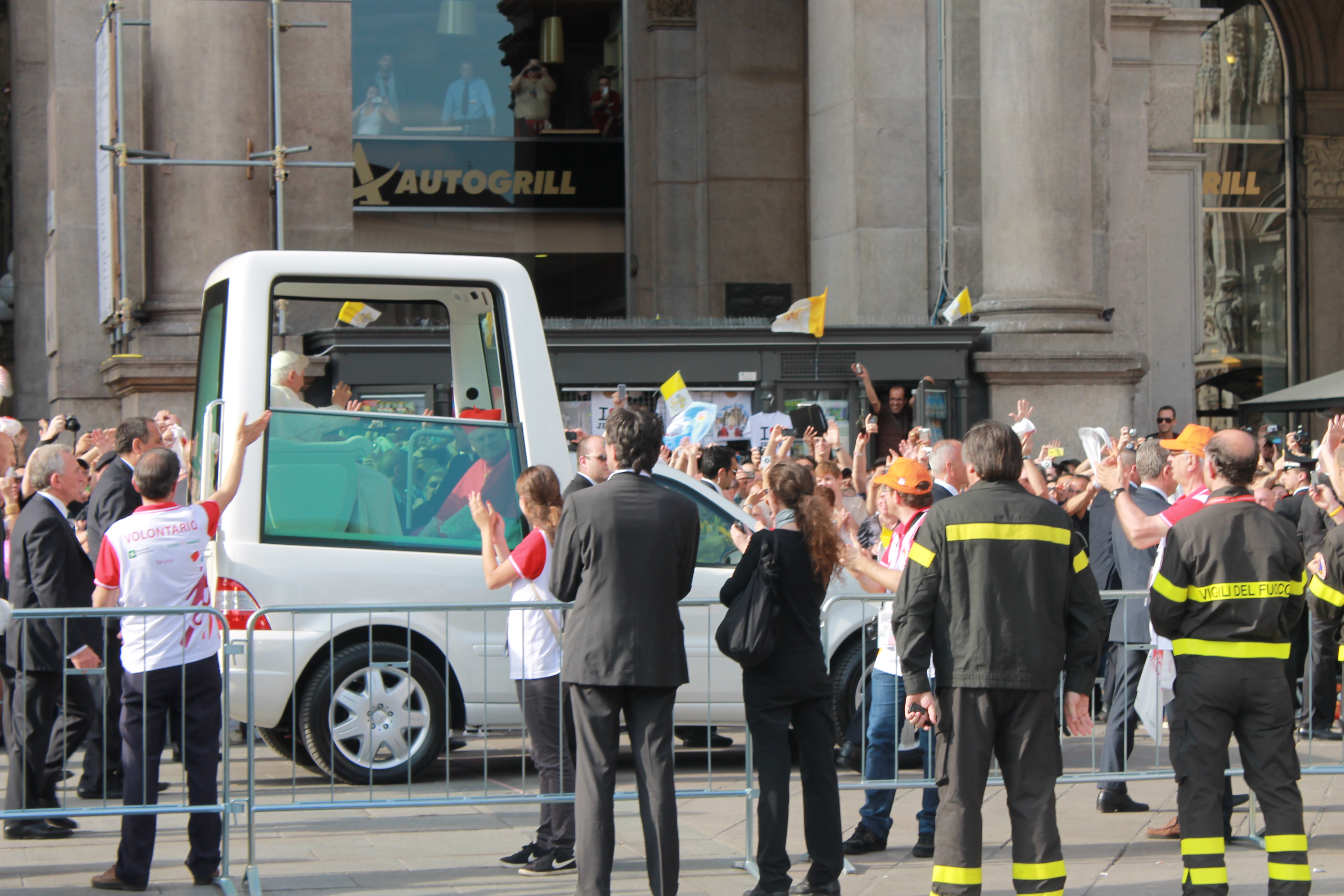 “Sono molto lieto di essere oggi in mezzo a voi – ha detto il Papa – e ringrazio Dio, che mi offre l’opportunità di visitare la vostra illustre Città”. “Il mio primo incontro con i milanesi – ha proseguito – avviene in questa Piazza del Duomo, cuore di Milano, dove sorge l’imponente monumento simbolo della Città. Con la sua selva di guglie esso invita a guardare in alto, a Dio”. Ha poi aggiunto: “Proprio tale slancio verso il cielo ha sempre caratterizzato Milano e le ha permesso nel tempo di rispondere con frutto alla sua vocazione: essere un crocevia di popoli e di culture”. “La città ha così saputo coniugare sapientemente – ha proseguito il Pontefice – l’orgoglio per la propria identità con la capacità di accogliere ogni contributo positivo che, nel corso della storia, le veniva offerto”. Quindi “ancora oggi, Milano è chiamata a riscoprire questo suo ruolo positivo, foriero di sviluppo e di pace per tutta l’Italia”.