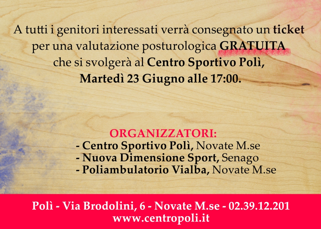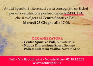 A tutti i genitori che parteciperanno, verrà poi consegnato un ticket per effettuare una valutazione posturologica gratuita per martedì 23 giugno.