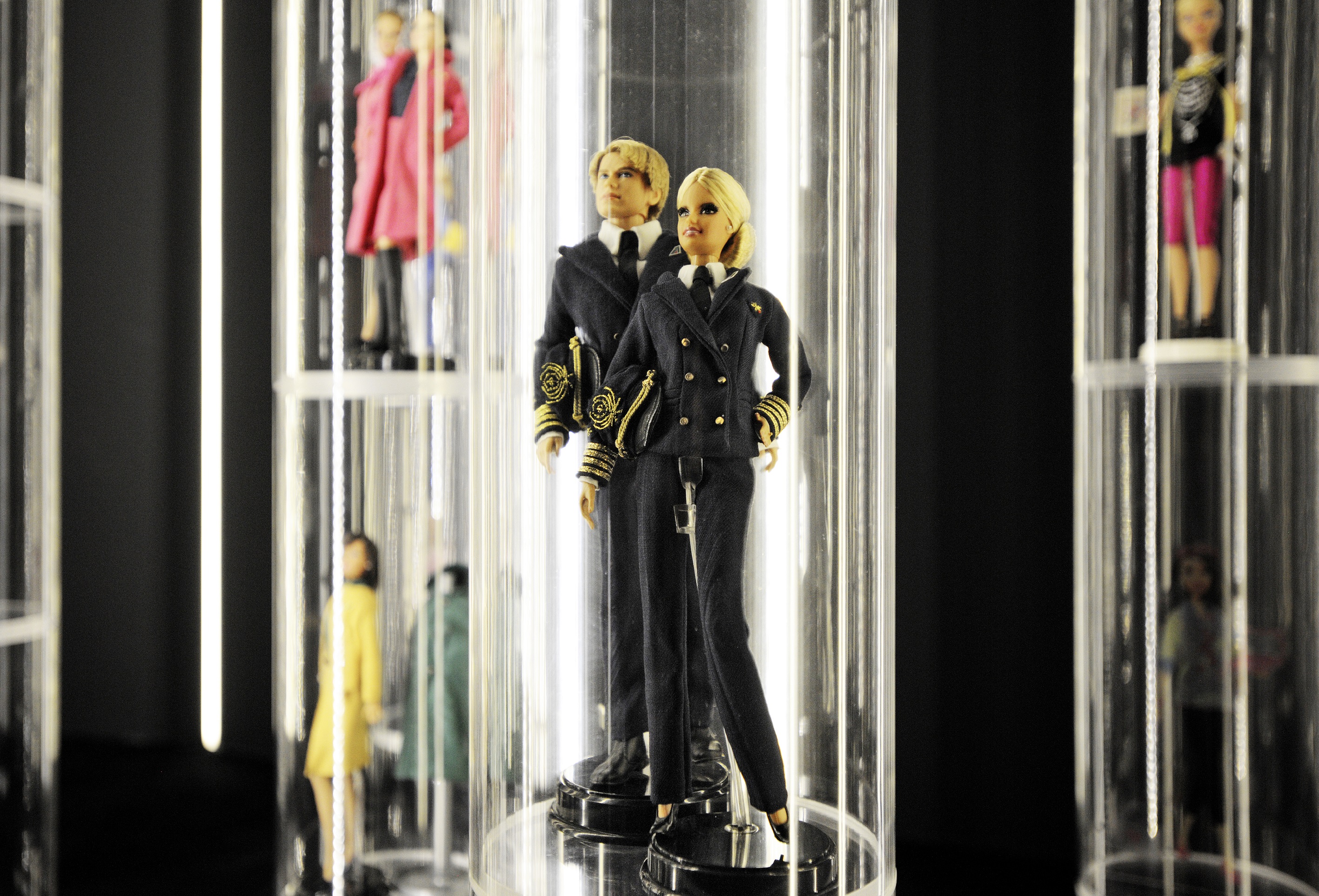 Le Barbie esposte alla Mostra sono vestite con le uniformi disegnate da molti tra i più grandi stilisti nel mondo: