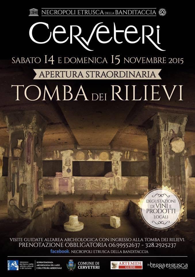 Sabato 14 e domenica 15 novembre 2015, ore 9:00-15:00 La Soprintendenza Archeologia del Lazio e dell’Etruria Meridionale, il Comune di Cerveteri e Artemide Guide organizzano l’apertura straordinaria della Tomba dei Rilievi, occasione unica per poter ammirare da vicino la complessa decorazione della Tomba.