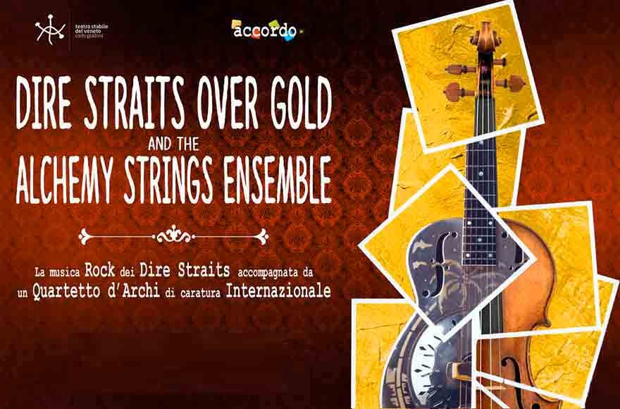 Dire Straits Over Gold And The Alchemy Strings Ensemble è un’esperienza musicale inedita per questo repertorio, un progetto che nasce a Padova e che andrà poi in tour in tutta Italia e all’estero: l’unione delle musiche dei Dire Straits alle armonie di una formazione classica d’archi dà origine a un connubio perfetto che arricchisce il repertorio originale e al tempo stesso esalta il ruolo dell’ensemble classico come strumento di completamento. Un coinvolgente susseguirsi di immagini e luci trasforma lo spettacolo in un’opera unica sui Dire Straits.