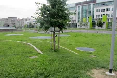 Il parcheggio è costituito da un piano interrato coperto e da un piano strada destinato a verde pubblico. La capienza è di 221 posti auto e 52 posti moto.