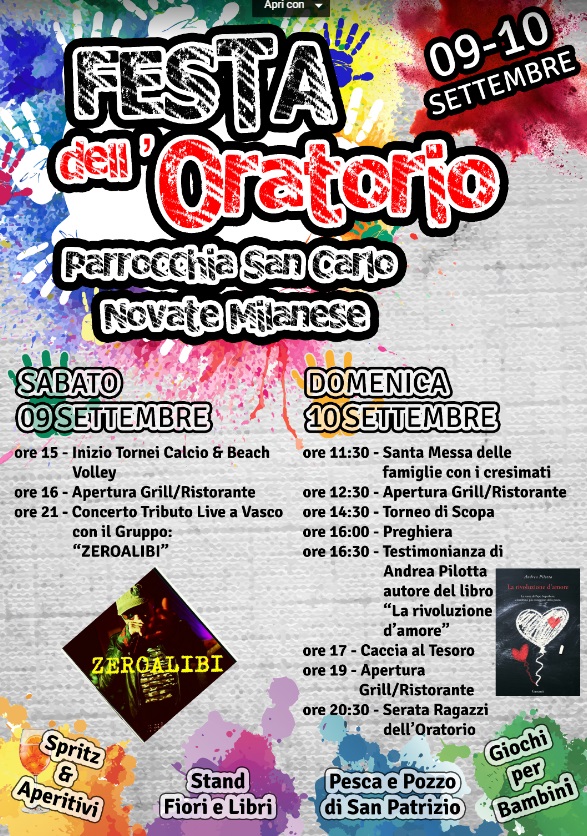 Novità per la festa dell’oratorio S. Carlo, il sabato sera arriva la band tribute di Vasco Rossi con il gruppo “Zeroalibi”.