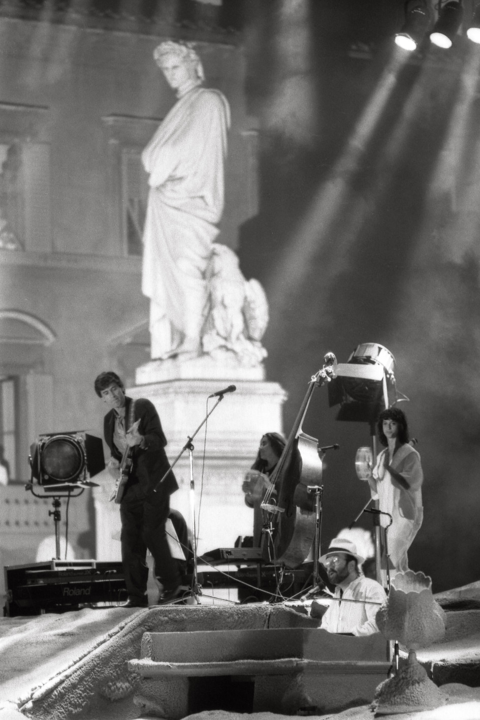 In primo piano è la musica, ma in molte immagini è facile scorgere veri affiche generazionali, momenti curiosi, il carattere degli artisti, il pathos che aleggia. Tra gli altri, Dalla e Morandi sotto lo sguardo severo di Dante in piazza santa Croce, Fabrizio De André con l’immancabile sigaretta accesa, un giovanissimo e sbarazzino Jovanotti, Toam Waits che entra in scena, megafono alla mano, insieme al pubblico, il pubblico del Boss e quello del Blasco.