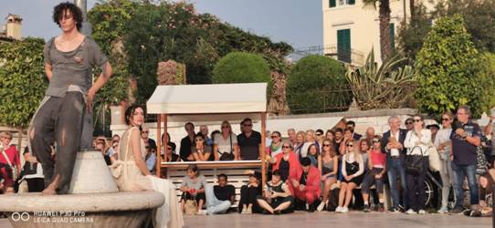 coinvolgenti performance di strada, con cui ci invita a riflettere sul senso della nostra attuale