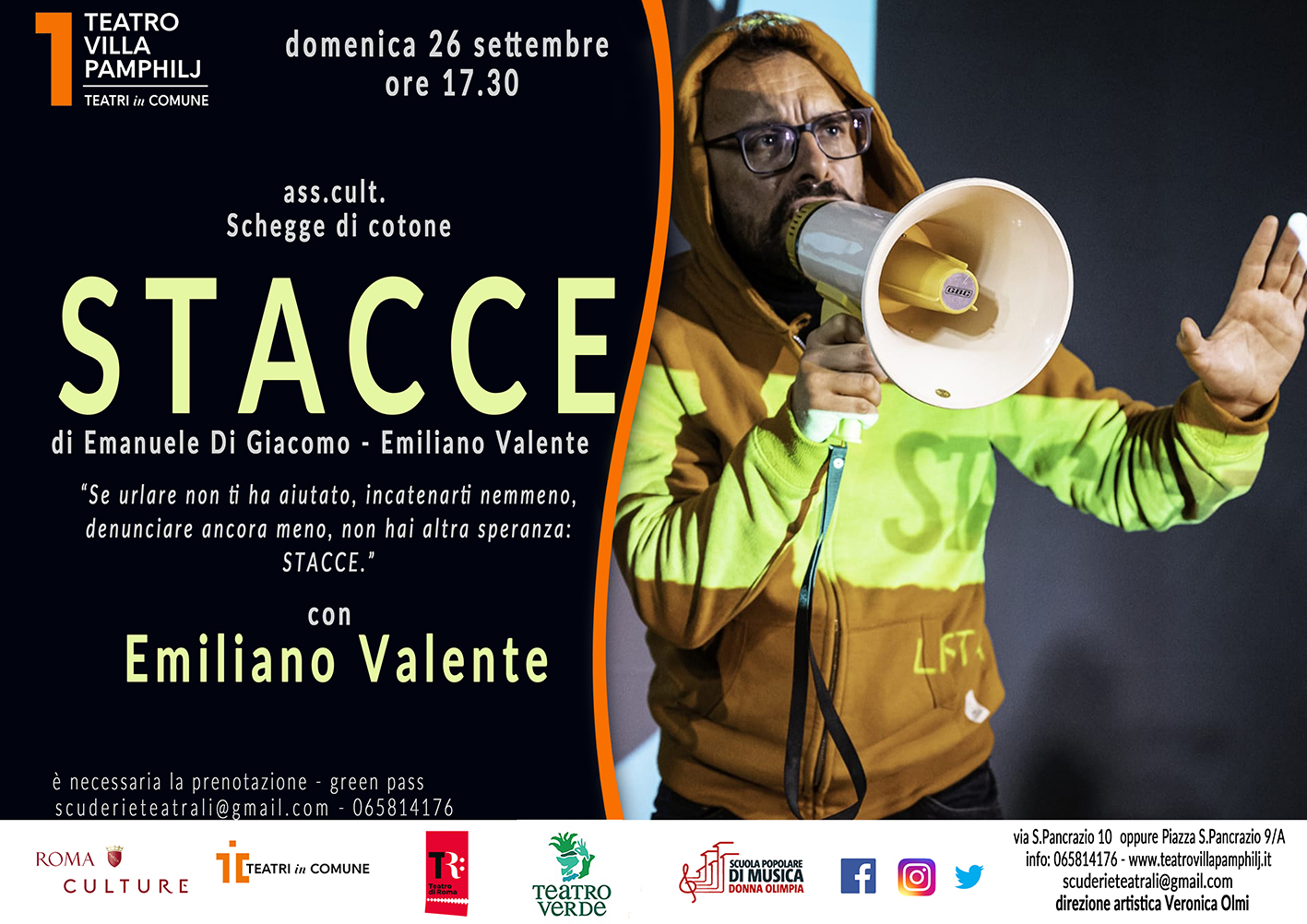“Stacce” la lista cinica per Roma Capitale di Emanuele Di Giacomo e Emiliano Valente con e regia Emiliano Valente. Teatro Villa Pamphilj – Roma – Domenica 26 settembre – ore 17.30 – ingresso 10 euro