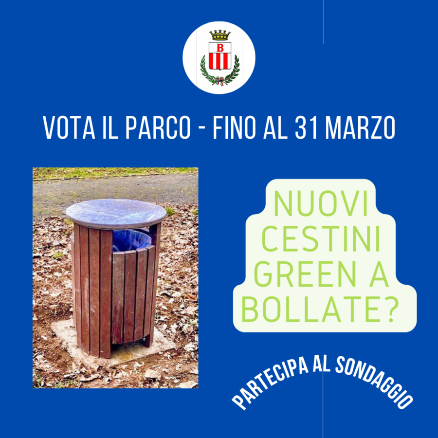 C’è tempo fino al 31 marzo per dire la propria in merito alla scelta del parco di Bollate dove posizionare i nuovi cestini pubblici in arrivo per il 2022. L’iniziativa, voluta dall’Amministrazione comunale, è partita lo scorso 1 marzo e si concluderà a fine mese.
