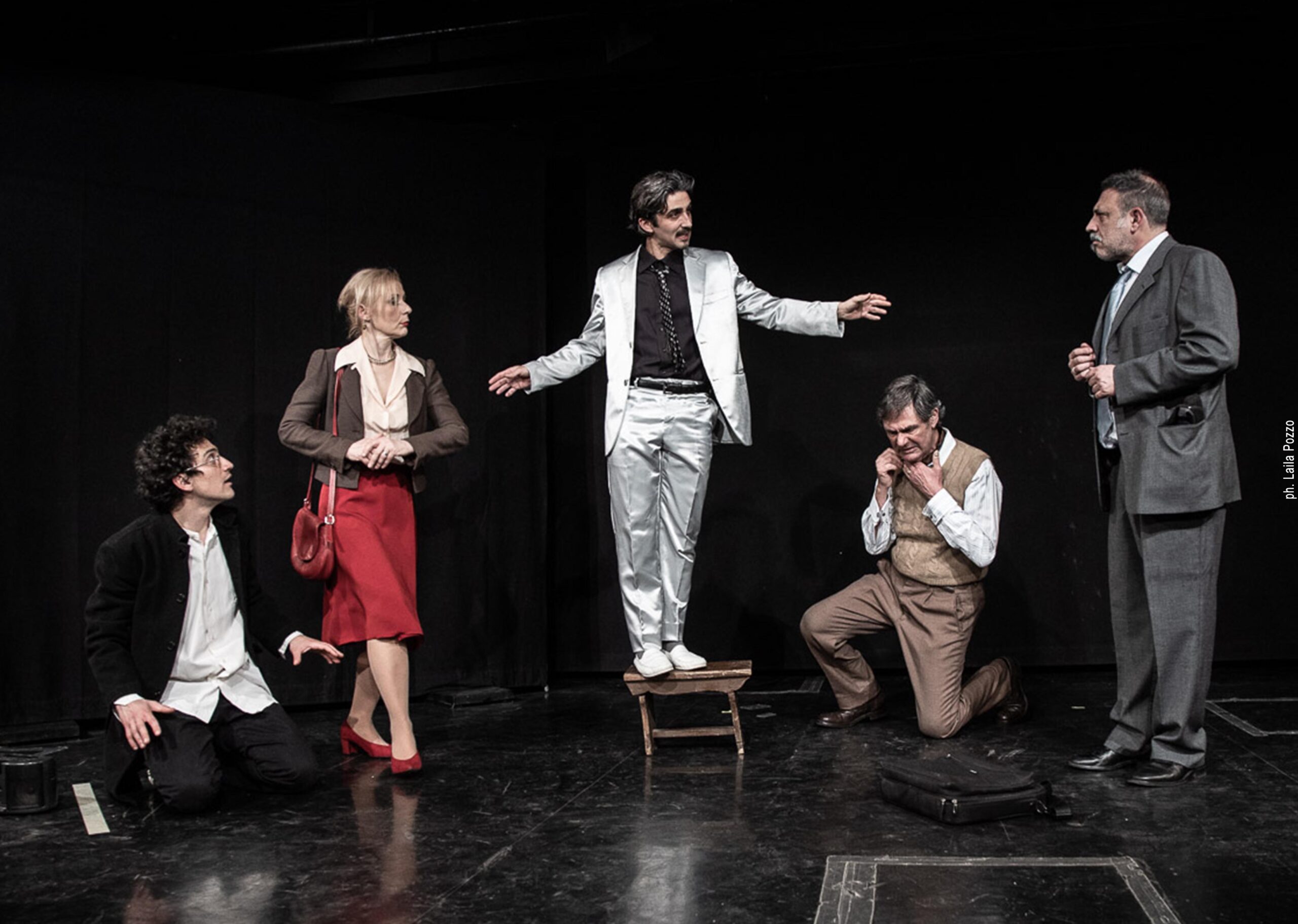 Una scena nuda, una linea. Cinque personaggi in fila per non si sa bene quale evento, non è specificato e in realtà non è nemmeno importante. L’importante è essere i primi della fila a tutti i costi. Non per merito, non per efficienza, non per qualifiche: semplicemente precedere gli altri.
