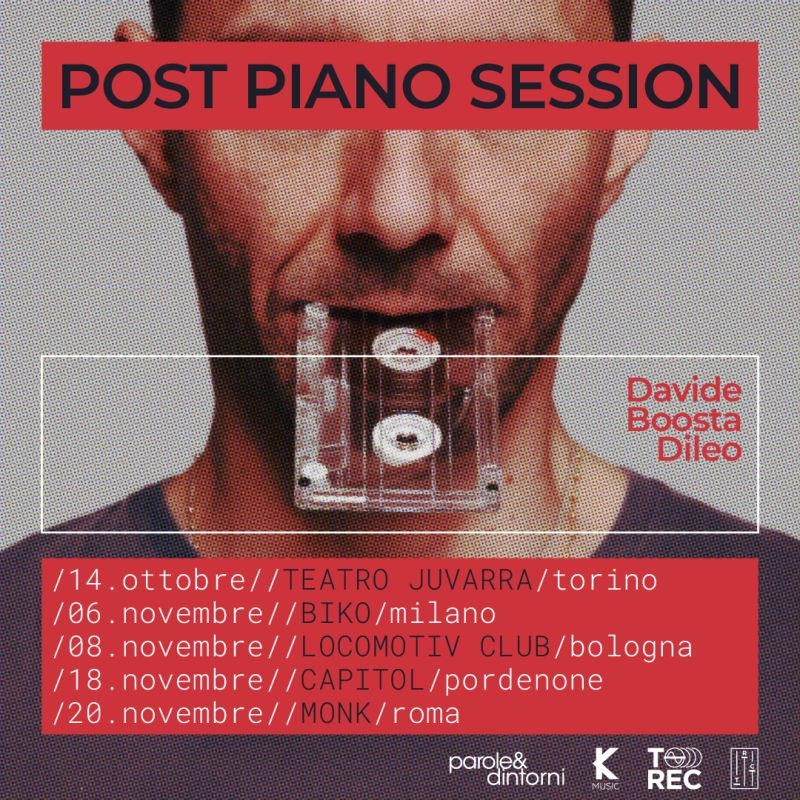 Davide “BOOSTA” Dileo – cofondatore e tastierista dei SUBSONICA nonché produttore, autore, compositore e DJ – dal 14 ottobre da Torino, sua città natale, sarà in tour nei principali club italiani per presentare dal vivo “POST PIANO SESSION”, il suo nuovo progetto discografico da solista.