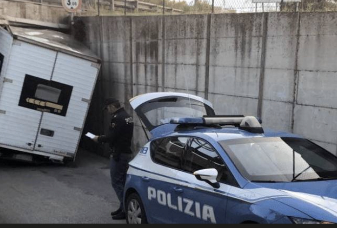 Assisi, autista incastrato sotto il cavalcavia. Multato immediatamente.