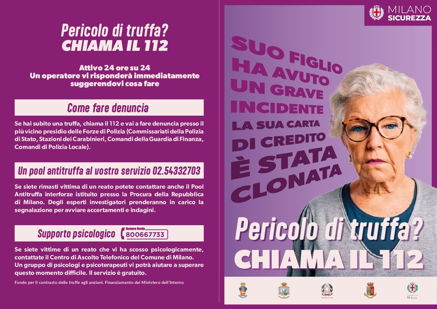 A tal proposito, si richiamano le raccomandazioni riportate nell’opuscolo redatto in collaborazione con la Prefettura e il Comune di Milano, contenente i consigli utili e i numeri da contattare per ottenere informazioni in caso di necessità.