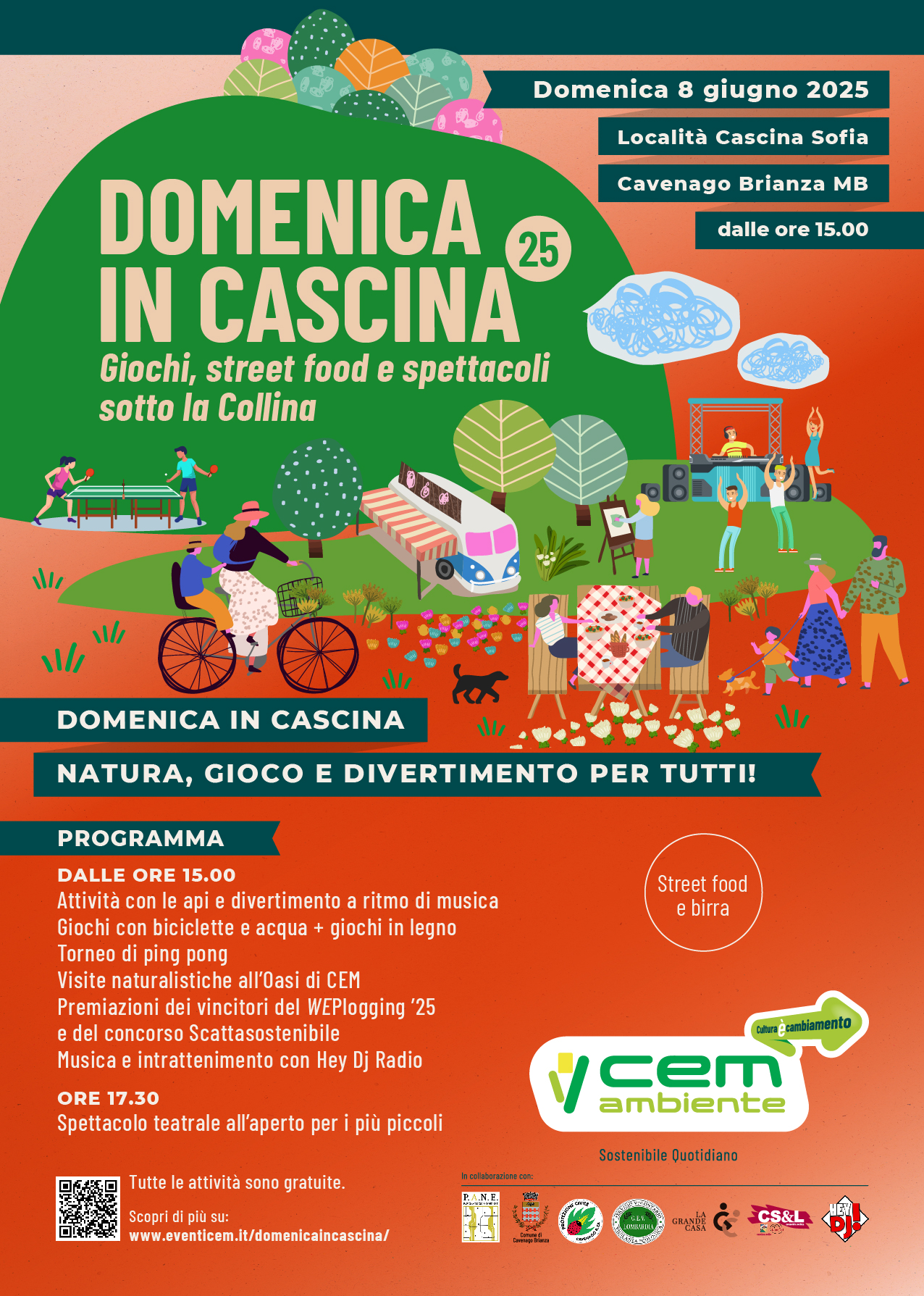 Torna Domenica in Cascina, edizione 2025, l’iniziativa per le famiglie organizzata nella sede di CEM Ambiente a Cavenago Brianza, località Cascina Sofia.