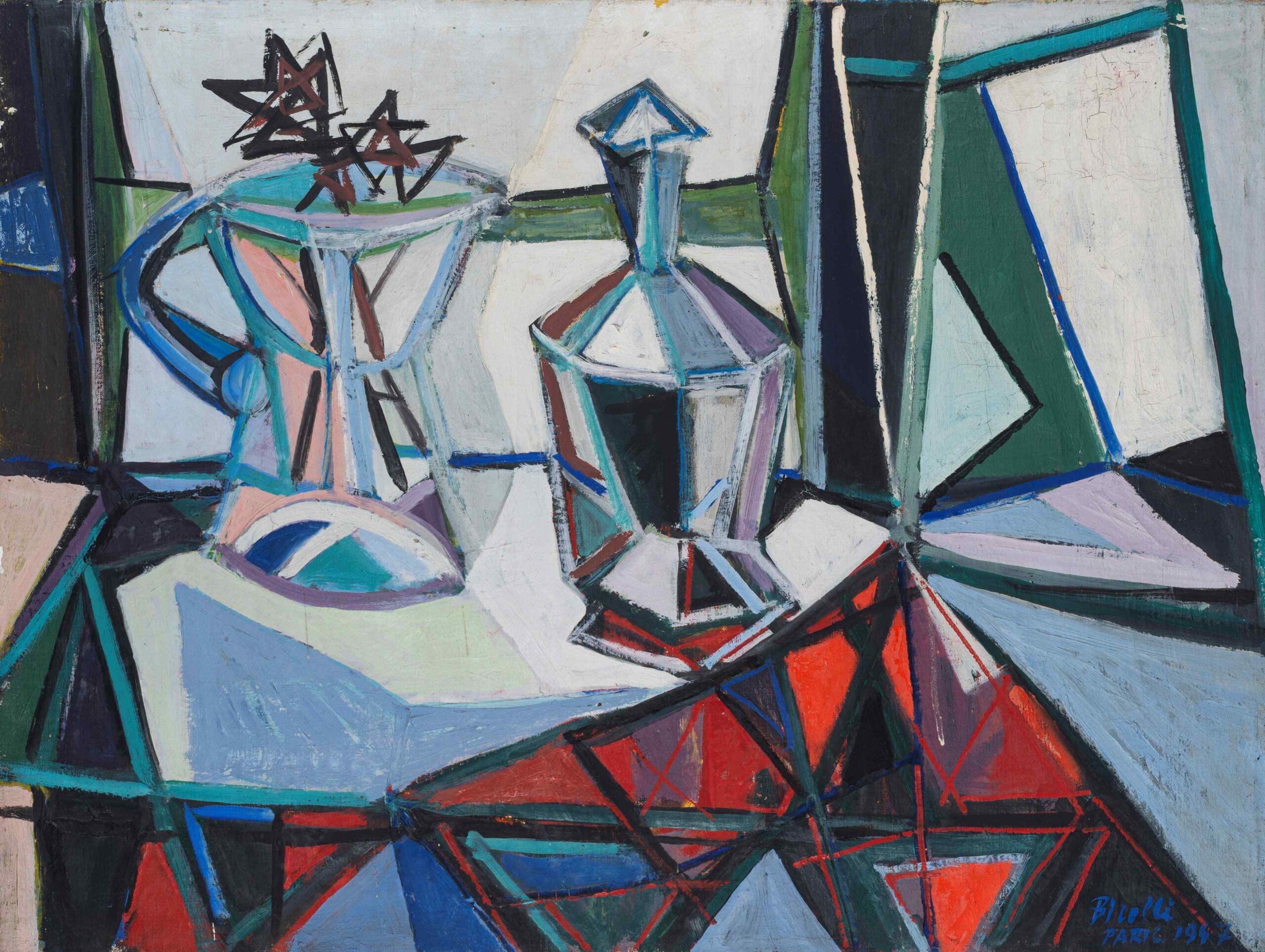 Il catalogo si distingue anche per una selezione di composizioni ad olio realizzate negli Anni ’40 e ’50 da autori centrali della pittura italiana del secondo dopoguerra. Tra questi, Bottiglia, 1947, di Renato Birolli (Lotto 98, stima € 8.000 – 12.000), rappresentativa della sua fase di lirismo astratto sviluppata durante il soggiorno parigino; una serie di opere di Antonio Corpora, e Lavoro nei campi, 1947/48, di Giulio Turcato (Lotto 99, stima € 1.000 – 1.500), che riflette l’influenza del neocubismo e delle ricerche astratte del tempo.