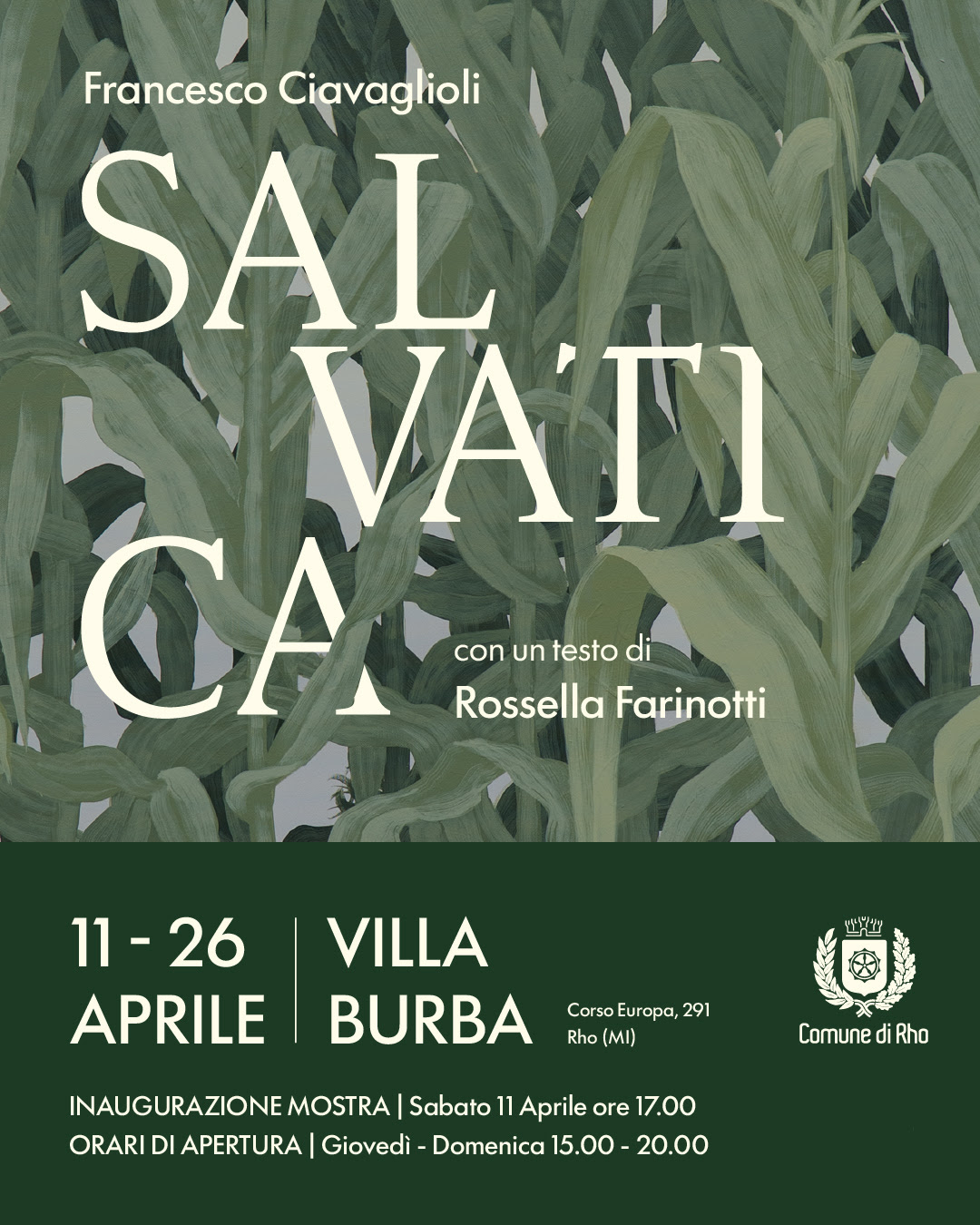 Dall’11 al 26 aprile 2026 Sala Colonne, Sala del Filatoio e Sala degli Specchi di Villa Burba a Rho accolgono le opere di Francesco Ciavaglioli, in una mostra personale dal titolo “Salvatica”.